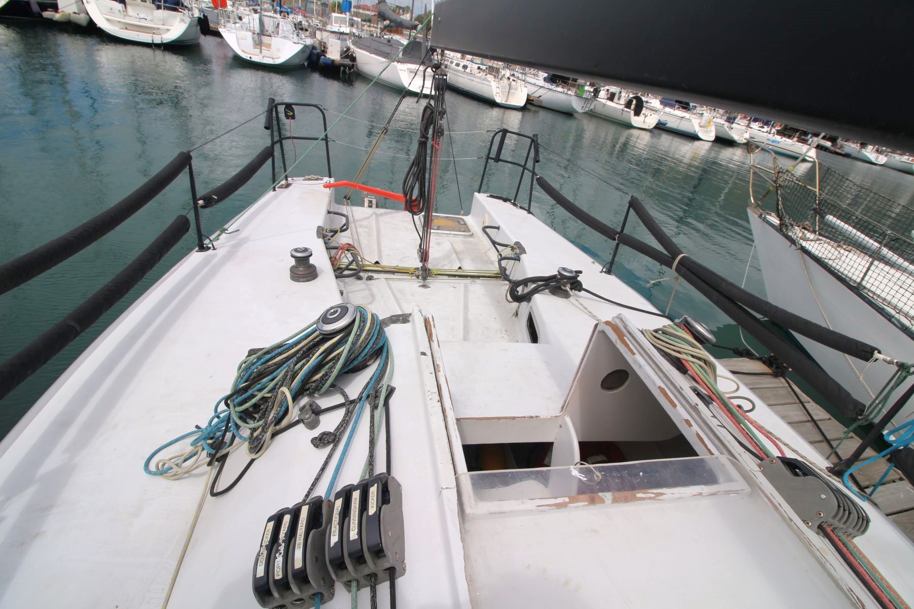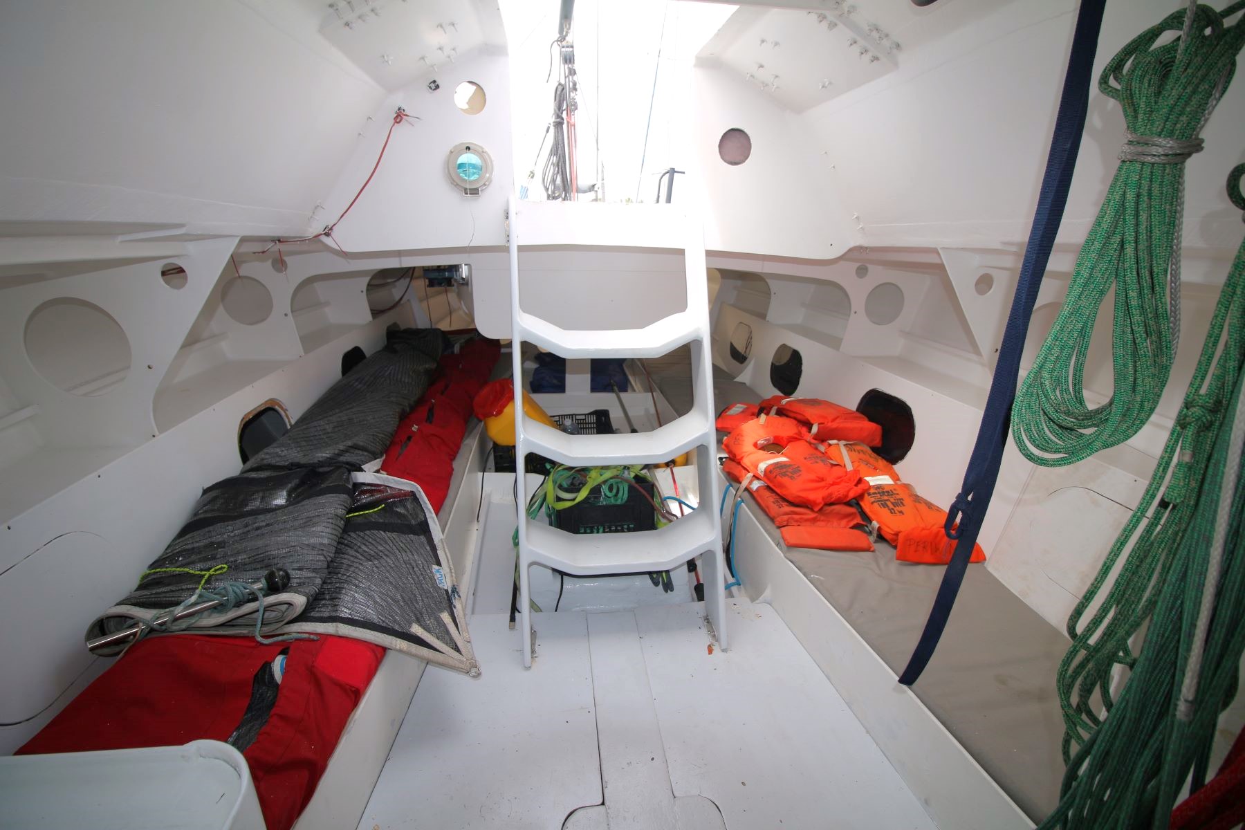 Accommodation Total berths: 4 - 4 singles, hand basin, plywood flooring, open-plan barebones racing interior.