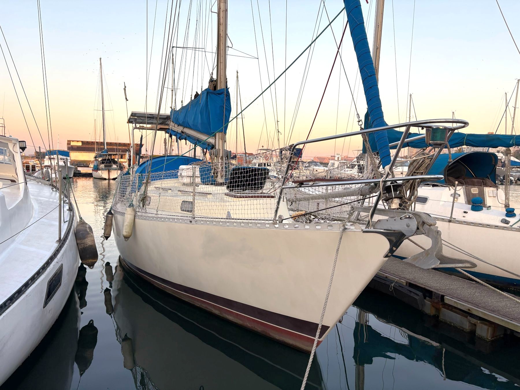 Rig Masthead sloop, aluminium mast and boom, roller-furling unit, stainless steel cable rigging.
