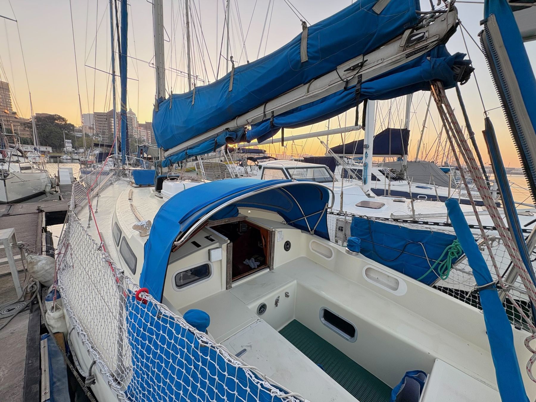 Extras Spray dodger, canvas shade covers attached to boom, gas BBQ, stern deck with solar arch and swim ladder, cockpit cushions, cabin and nav lights (except mast tri-colour) converted to LED, fenders and mooring lines.
