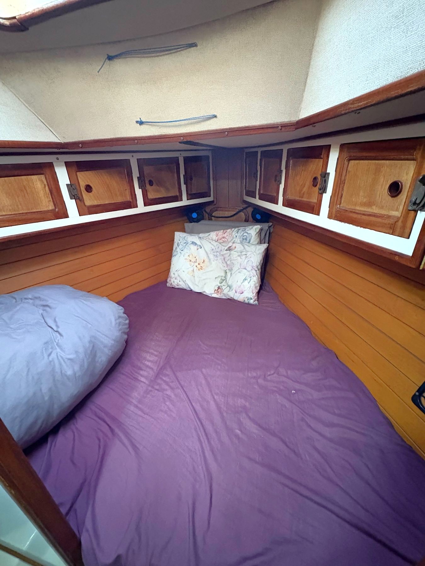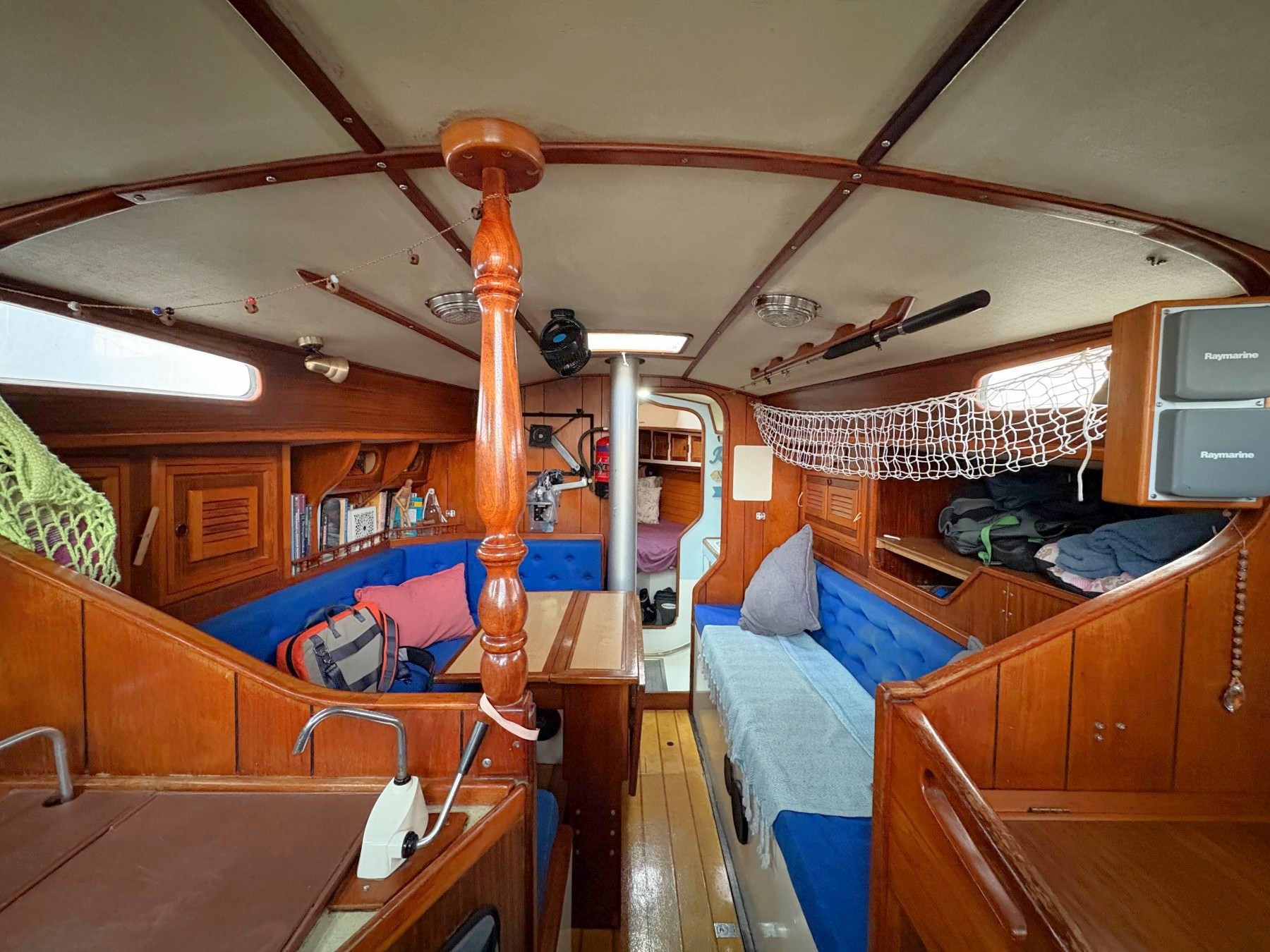 Accommodation Total berths: 6 - 1 Cabin. 2 Double and 2 single berths, Jabsco manual heads, shower, hand basin, blue material upholstery. A well maintained Teak finished interior with white headliners. Single quarter berth, saloon portside converts to double and single starboard, double in the V-berth.