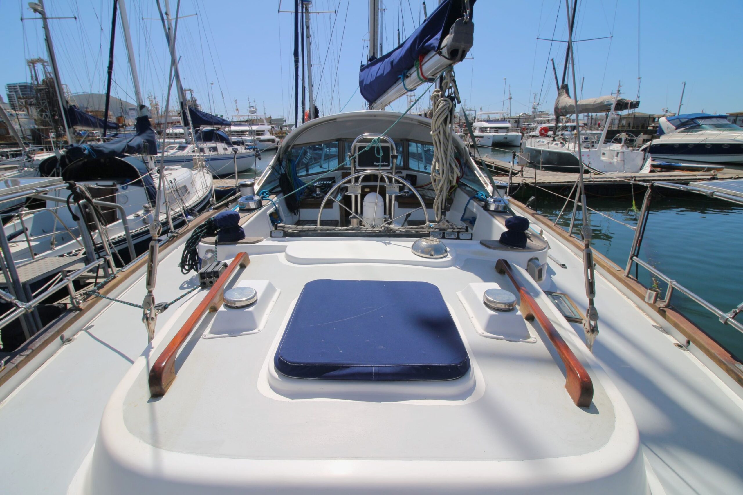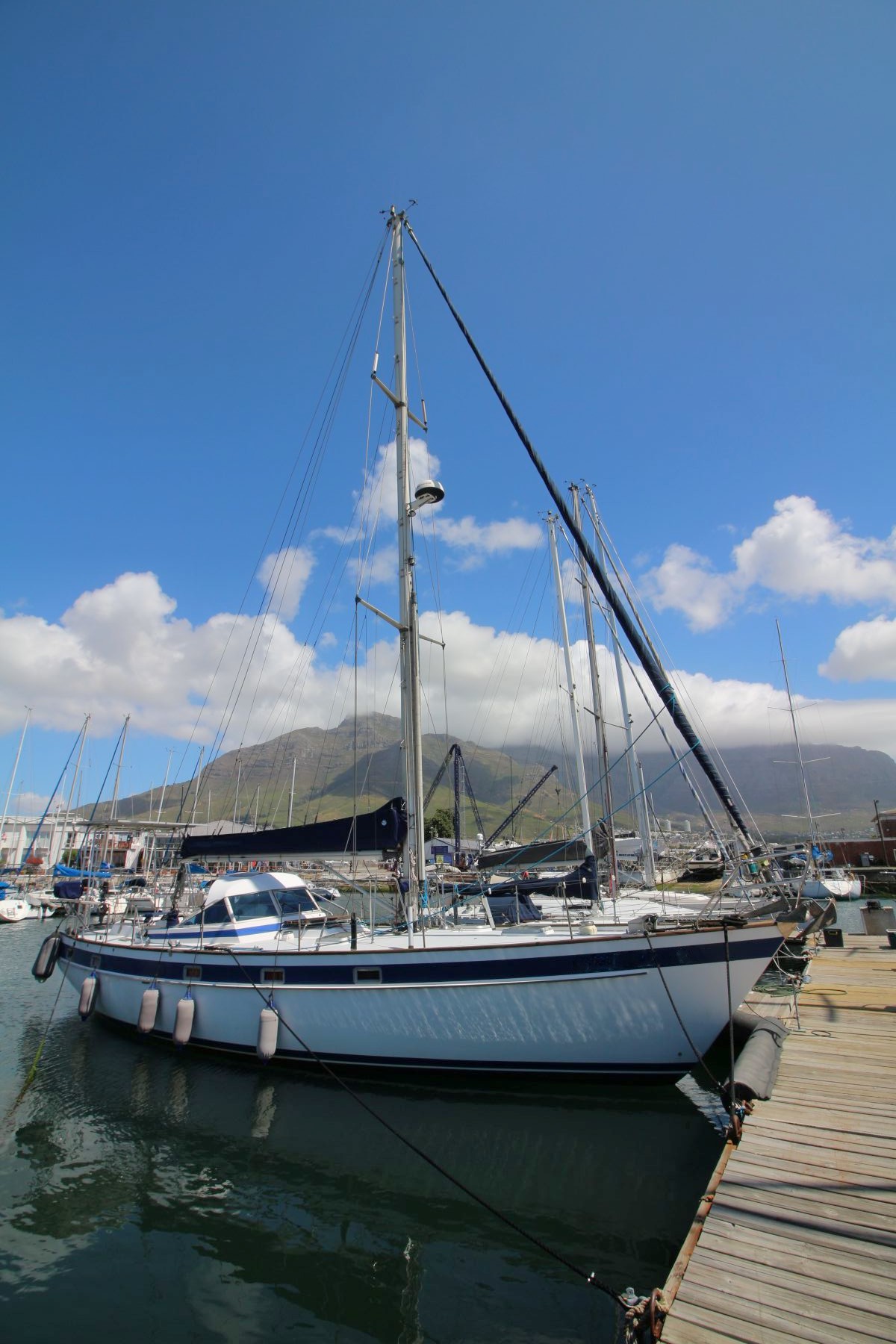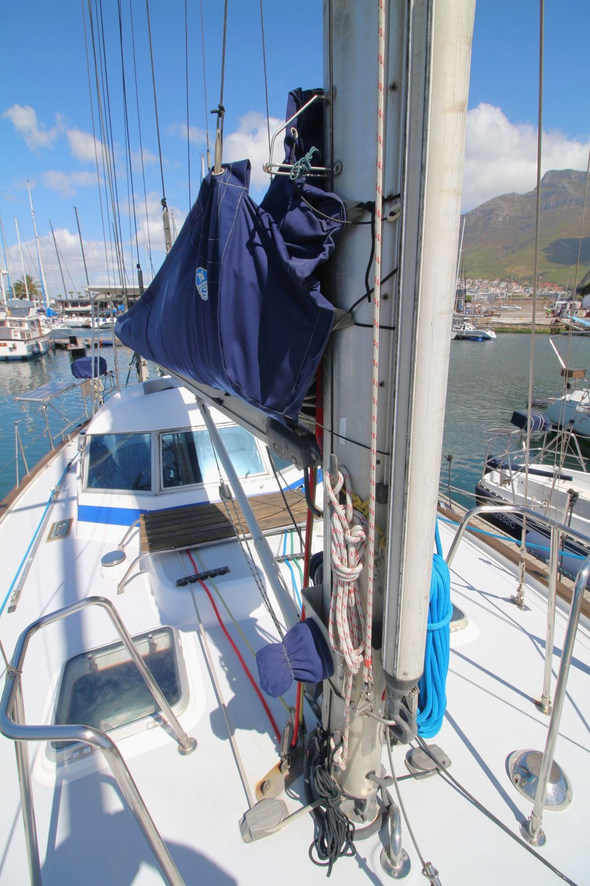 Rig Masthead sloop, Selden aluminium mast and boom, spinnaker pole (stows on mast), Profurl roller-furling unit, removable inner forestay, steps up mast, Granny bars at mast, removable inner forestay, stainless steel cable rigging.