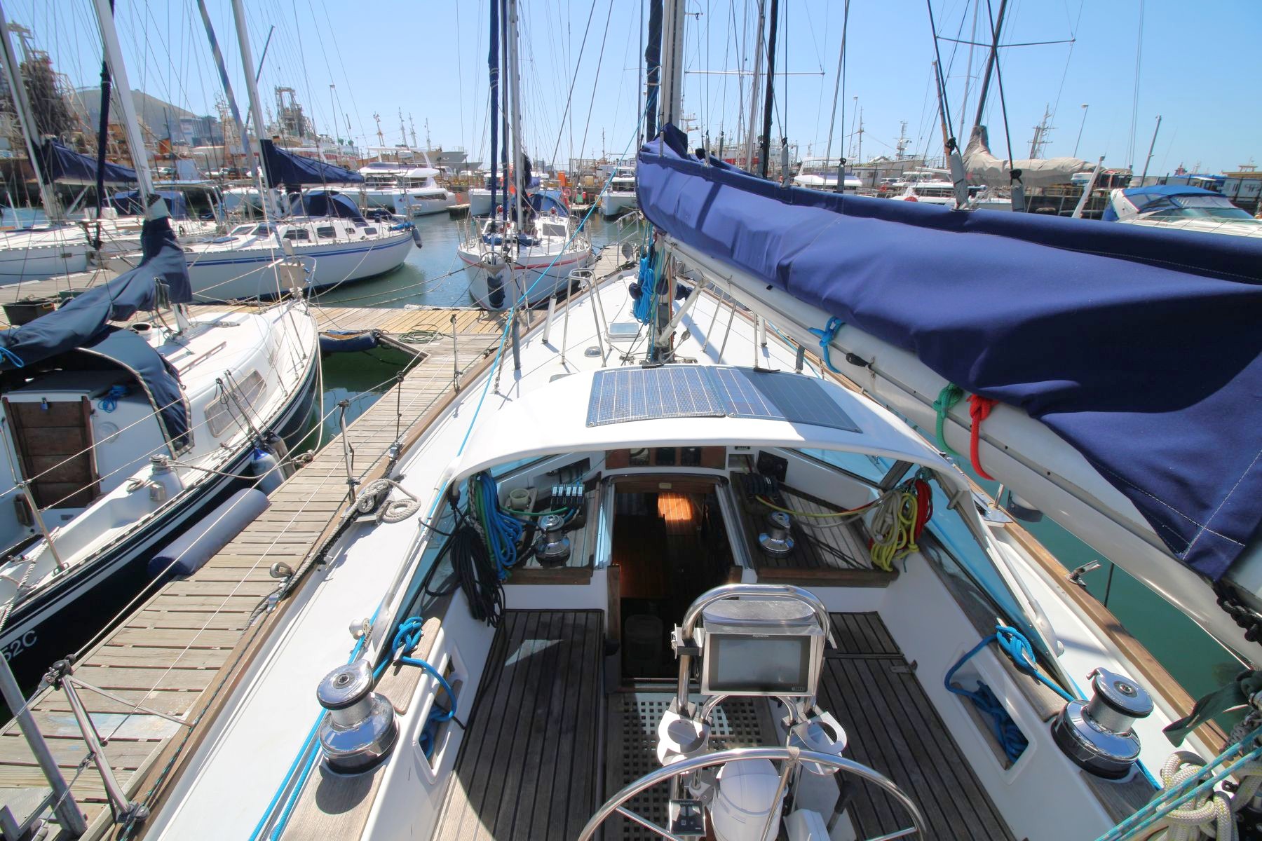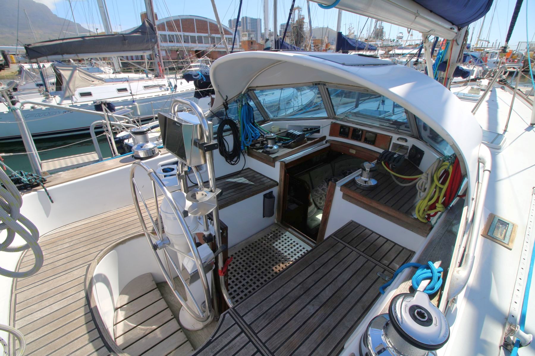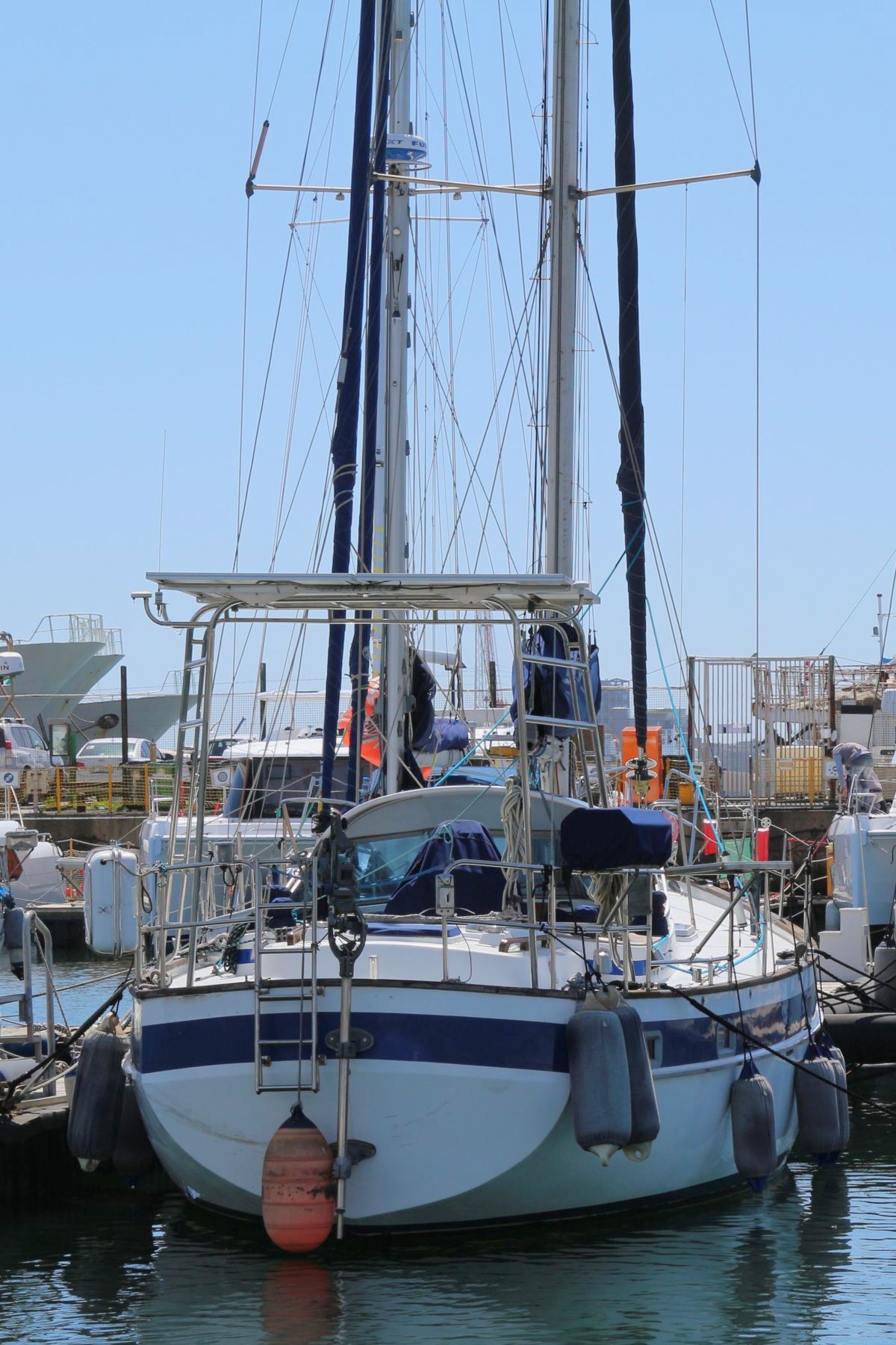 Rig Masthead sloop, Selden aluminium mast and boom, spinnaker pole (stows on mast), Profurl roller-furling unit, removable inner forestay, steps up mast, Granny bars at mast, removable inner forestay, stainless steel cable rigging.