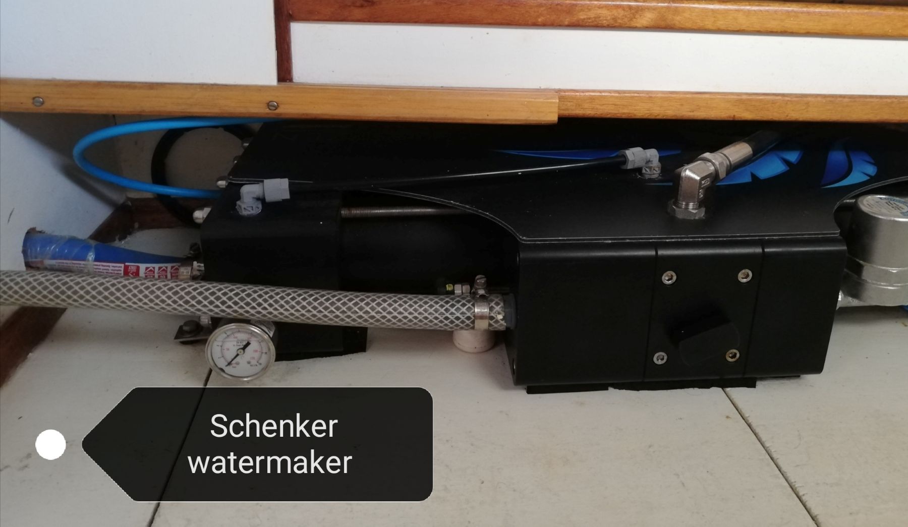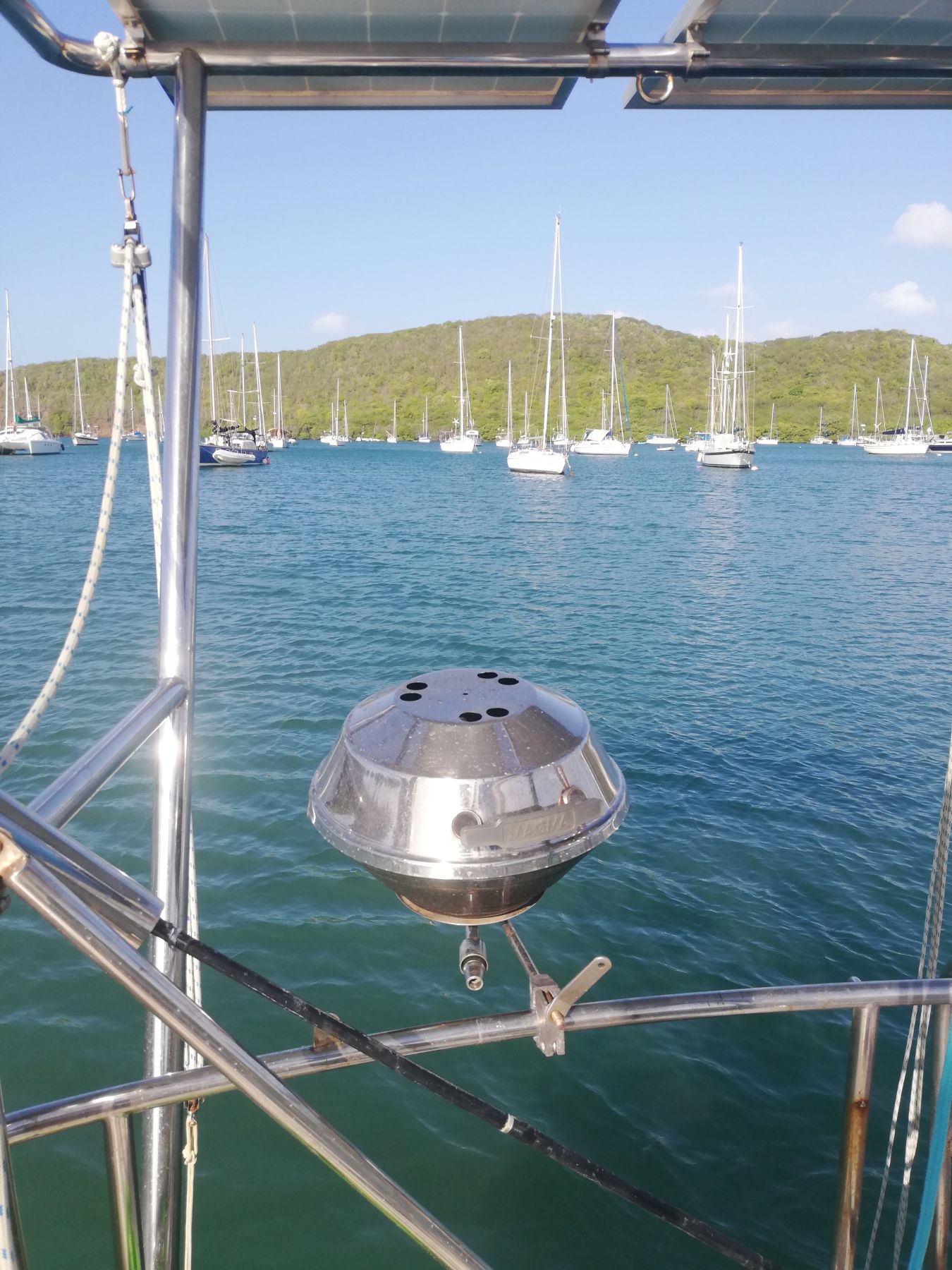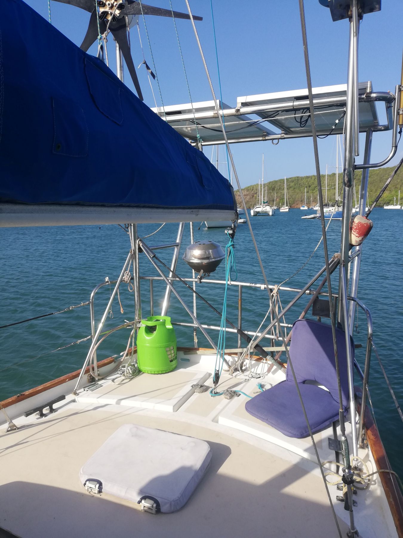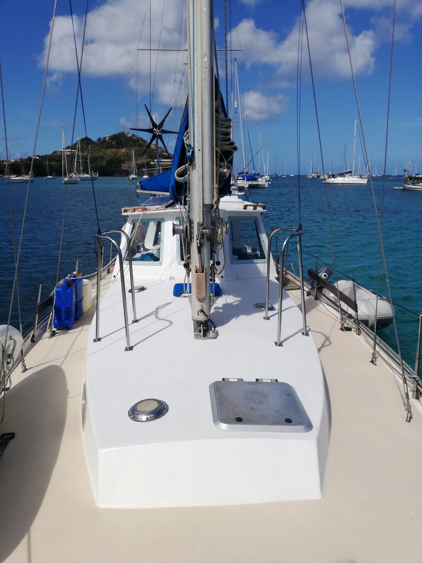 Extras Schenker 30L/hr water maker, sissy bars, hatch covers, stainless steel gas BBQ, stainless steel frame for solar with dinghy davits, selection of hand tools, Hurricane safe mooring ball (2 x 2.4m screws included), fenders and mooring lines.